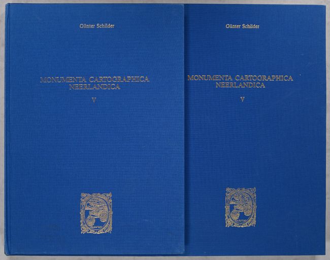 This is the fifth volume in this incredible series on the history of cartography. Volume V covers 10 important and highly decorative wall maps by Dutch masters Willem Jansz Blaeu and the Visscher, including Blaeu's maps of the continents and both Blaeu and Visscher's maps of Germania and Holland. Most of these maps were produced during the Twelve Years' Truce (1609-21), a prosperous and productive ceasefire in the Eighty Years' War between the Dutch Republic and Spain. It provides a superb carto-bibliography of the most decorative wall maps from the Dutch Golden Age. Text volume in both Dutch and English, 384 pp., profusely illustrated, together with the portfolio containing full-size facsimile reproductions of 10 maps on 145 sheets (the contents erroneously list 142 sheets). The maps reproduced in the portfolio include Blaeu's maps of Europe, Asia, Africa, and America (14 sheets each); Visscher's map of Germania (19 sheets); Blaeu's map of Germania (16 sheets); Blaeu's map of Holland and West-Friesland (11 sheets); Visscher's map of Holland and West-Friesland (18 sheets); Blaeu's map of Italy (16 sheets); and Blaeu's map of Flanders (9 sheets). Hardbound in blue cloth with gilt embossed titles.