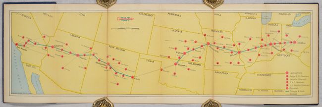 This decorative pictorial map presents the route of Transcontinental Air Transport (TAT) from New York and Washington, D.C. west to Los Angeles and San Francisco through a combination of planes and trains (no automobiles). The company's air routes operated between Columbus, Ohio and Waynoka, Oklahoma and then again from Clovis, New Mexico to Los Angeles and San Francisco. Trains would handle the rest including from New York to Columbus, and again from Waynoka to Clovis. The decorative map border is composed of 30 illustrations that passengers would see along the complete route. On verso is a small weather map locating landing fields, teletype lines, and numerous weather observers identified by pink dots. Since TAT operated before radar had been developed, they relied solely on observers to "reduce the weather hazard of aviation to its absolute minimum." These maps were given as gifts to passengers to further enjoy their travel experience and include a flight log. This particular example was given to passenger A. Vernullen, who flew from Los Angeles to Columbus on August 24, 1929.