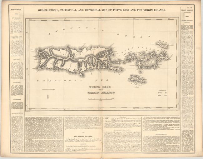 The map is on a full folio sheet (21.9 x 17.5") with English text giving a brief description of the islands, chief towns, population, government, and history. It shows good detail along the coastline with only topography represented in the interior. Engraved by Fielding Lucas and engraved by Kneass.