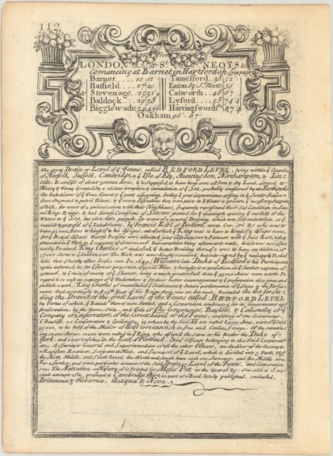 This lot includes four copper-engraved, Ogilby-style strip road maps, each with coats-of-arms and descriptive text by John Owen. The first two maps include elaborate title cartouches and text by Owen about Oxford University (first map) and the Bedford Level (or Great Level of the Fens). The list of maps includes: