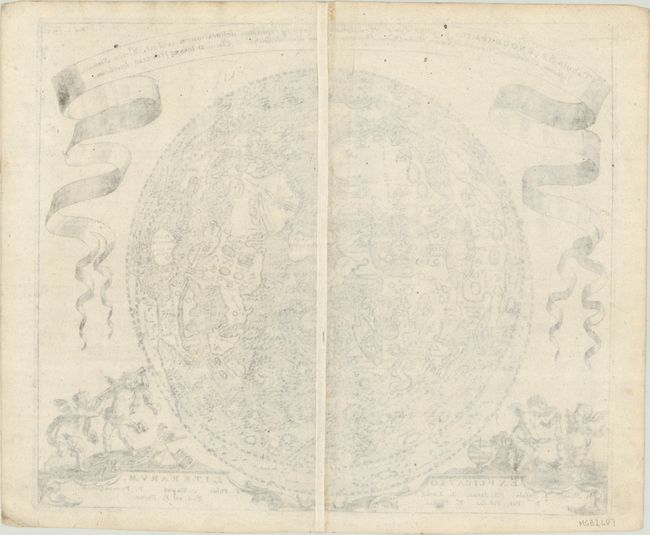 This superb engraving of the moon is a close copy of Hevelius' groundbreaking Map Q, which introduced Hevelius' nomenclature for features of the moon based on terrestrial cartography. Hevelius published Map Q and several other moon maps in his pioneering lunar atlas, Selenographia, in 1647. Zahn follows Hevelius' depiction of the surface of the moon, which is shown filled with maria, mountains and craters, as well as the naming of each of these features. If you turn the map 90 degrees counter-clockwise, the shaded area dominating the lower center of the sphere resembles the Mediterranean Sea, which Hevelius named Mare Mediterraneum. The landform in the middle of the sea is named Sicilia, and the crater in its center is M. Aetna.