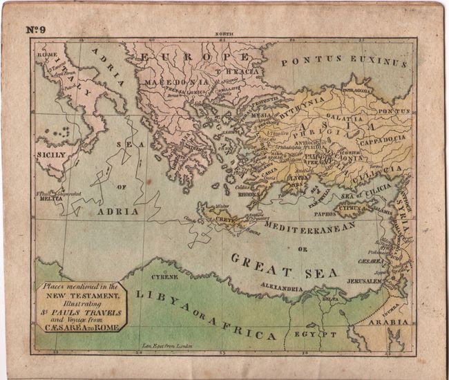 Places mentioned in the New Testament, Illustrating St. Pauls Travels and Voyage from Caesarea to Rome.(4.6 x 3.8").