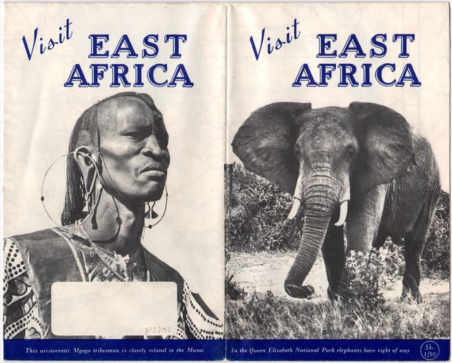 Designed and produced by Glasgow-based MacLehose Designers + Printers for the East Africa Tourist Travel Association, this delightful tourist map is filled with images of the animals one might see while on safari in East Africa. Many attractions are located, including Lake Victoria, Mount Kilimanjaro, Selous Game Sanctuary, and the ruins of Gedi. Travel information, such as roads and railroad lines, are also shown. Game reserves and national park are colored yellow and bordered with a heavy green line. This later edition removes references to the failed British Groundnut Scheme which appeared on the 1949 edition. Its design differs significantly from Dennis Owen Mathews's work on the earlier editions, with a less whimsical spin on the region. (There is no sea monster in Lake Victoria here, for instance.) The 1962 edition also adds aerodromes, marked with little red planes. Self-folding into photographic covers (5.4 x 8.7"), with text and photographs on verso.