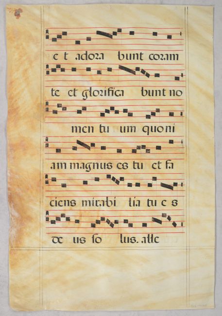 This impressive elephant folio sheet contains five-line music in red and black ink with one large initial. The song translates as: