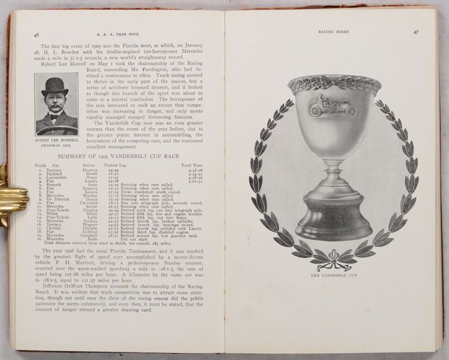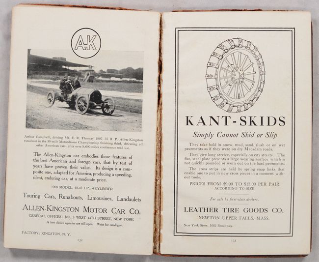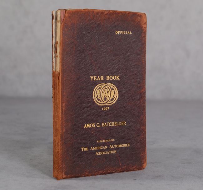 This first AAA Year Book contains extensive details on the history of the club from its creation in 1902, its touring and racing activities, and proposals for legislation. This particular example is the personal copy of Amos G. Batchelder, who is listed on the Executive Committee on page 1. He became the long-term Chairman of the Board during its formative years before dying in a plane crash in 1921. Batchelder was instrumental in promoting the first legislation providing federal support for highways in 1916, and he received a gold pen from President Wilson at the signing of the legislation. For a biography of Batchelder, click here. 134 pages with numerous illustrated advertisements. Full leather covers with gilt title and Batchelder's name on the front cover.