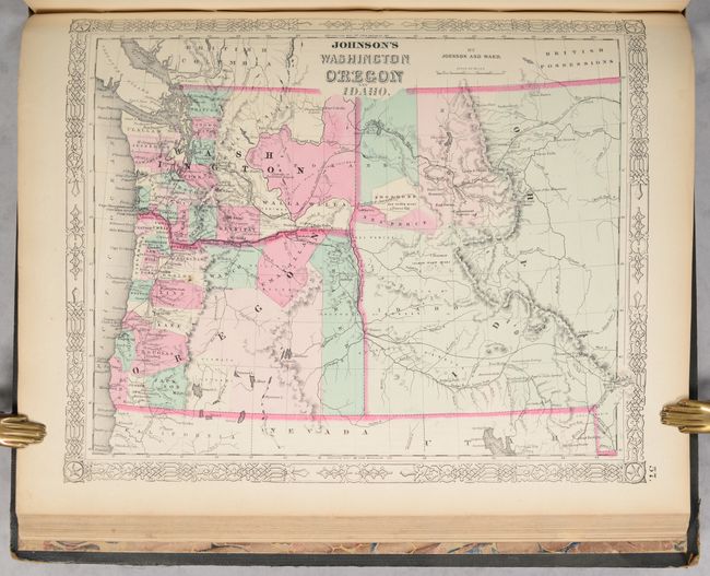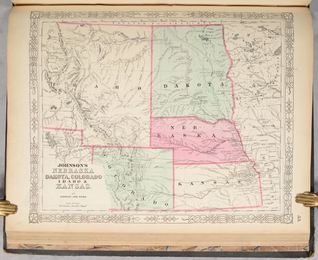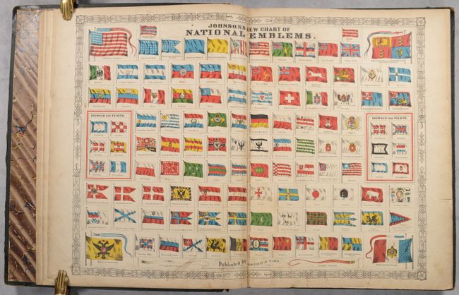 Hardbound in original quarter calf and tips over embossed green cloth covers, titling in gilt on front cover and spine, and marbled endpapers. This example includes a note pasted to one of the front free-endpapers stating that extra guards have been included in the atlas so that the owner could insert additional maps as they became available, and that if important geographical or political changes occurred, the publishers would send the map "free of expense, on receipt of fifteen cents for each map."