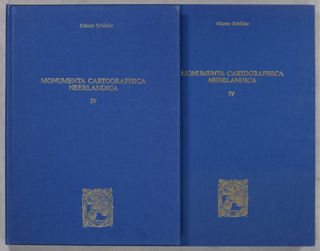 This is the fourth volume in this incredible series on the history of cartography. The fourth volume focuses on the highly decorative single-sheet maps of Willem Jansz Blaeu. Text volume in both Dutch and English, 364 pp., profusely illustrated, together with the portfolio containing 23 full-size facsimile reproductions on 37 sheets. Among the maps reproduced in the folio are Blaeu's world map on Mercator's projection (the 2-sheet version in both its first and third states and the folio edition); his maps of the Seventeen Provinces and Holland (in their 1604 and 1608 editions); a map of the Beemster before and after the "impoldering"; his 1617 maps of Europe, Africa, and Asia; and the second state of his America map, as well as a couple of impressive engravings of sea battles. Hardbound in blue cloth with gilt embossed titles.