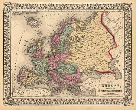 "Map of Europe, showing its Government Political Divisions", Mitchell, S. A.