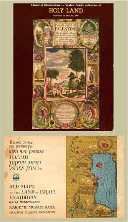 Two soft cover catalogs concerning the mapping of the Holy Land. First was produced by the Maritime Museum Haifa, (1963) printed in both English and Hebrew, and covers 87 great maps by both European and Asian cartographers. Several illustrations, some in color. Second is an auction catalog, fully illustrated with numerous color plates (1984). Covers both maps and prints. Both with shelf wear and a bit of staining to covers, contents very good.