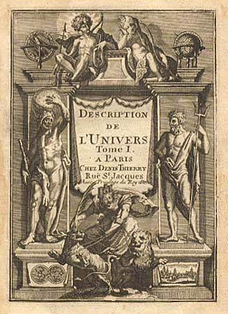 An attractive small title page with several allegorical figures, maps, globe and an armillary sphere.