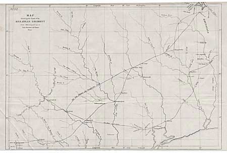 Uncommon map covering east-central Texas from the Sabine River to San Antonio. The "Old San Antonio and Nacogdoches Road" is prominently shown. Several very early settlements shown along the roads. This map was among the maps submitted to Congress to illuminate the U.S. Army's first explorations in Texas, and accompanied Capt. G.W. Hughes "Memoir descriptive of the March of a Division of the US Army under the command of BGEN. J.E. Wool from San Antonio in Texas to Saltillo in Mexico". Trimmed close at top for binding affecting engraving that is outside the neatline, as issued and typical for this map.