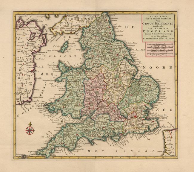 Handsome and detailed map including major roads, as well as topography and cities. Includes a bit of Ireland, Scotland and the French coast with considerably less detail.