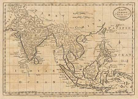 Crisp, dark impression with ample margins. Includes all of Indonesia and the Philippines west to Kandahar, then in Persia. Good detail within Indonesia and names the SPICE ISLANDS.