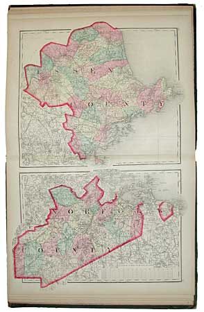 Illustrated title page, 100 pp, table of contents, index. Twenty-three maps, most double page, of the counties and cities. Plus maps of the United States, New England, and Massachusetts - all double page. A nice and complete county atlas.