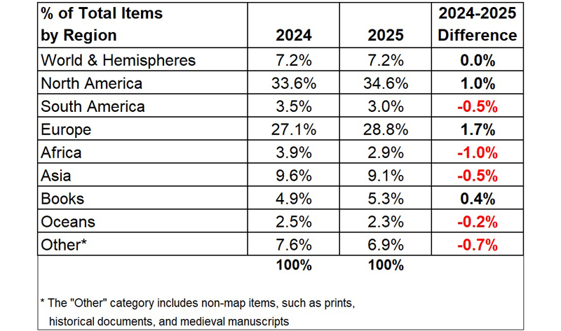 The geographic mix of material in our auctions remained fairly steady from 2024 to 2025. However, we were able to source more North American material, which is a category that we had been seeking to grow due to its strong performance in prior years. We also received more European material and less African material. While European maps have not been one of the better selling categories in recent years, we shifted towards more Eastern European maps, which tend to perform well with our customers.