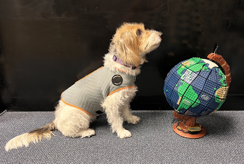 Our dog, Daisy (a PBGV), considering an exploration around the globe.