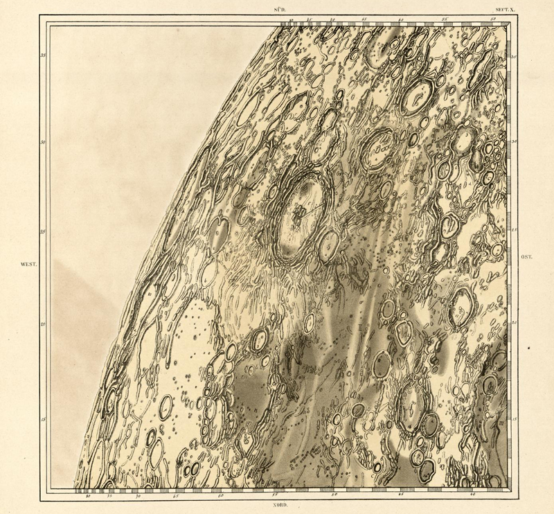 Section X of Johann Friedrich Julius Schmidt’s Charte der Gebirge des Mondes (1878) (Image courtesy of the Library of Congress)